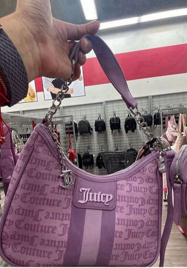 A stylish purple handbag featuring the Juicy Couture logo and a chic design. Perfect for everyday use or special occasions.