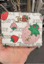 A stylish wallet featuring a strawberry design and the Juicy Couture logo.
