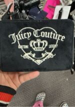 A stylish black wallet featuring the Juicy Couture logo with a crown design.