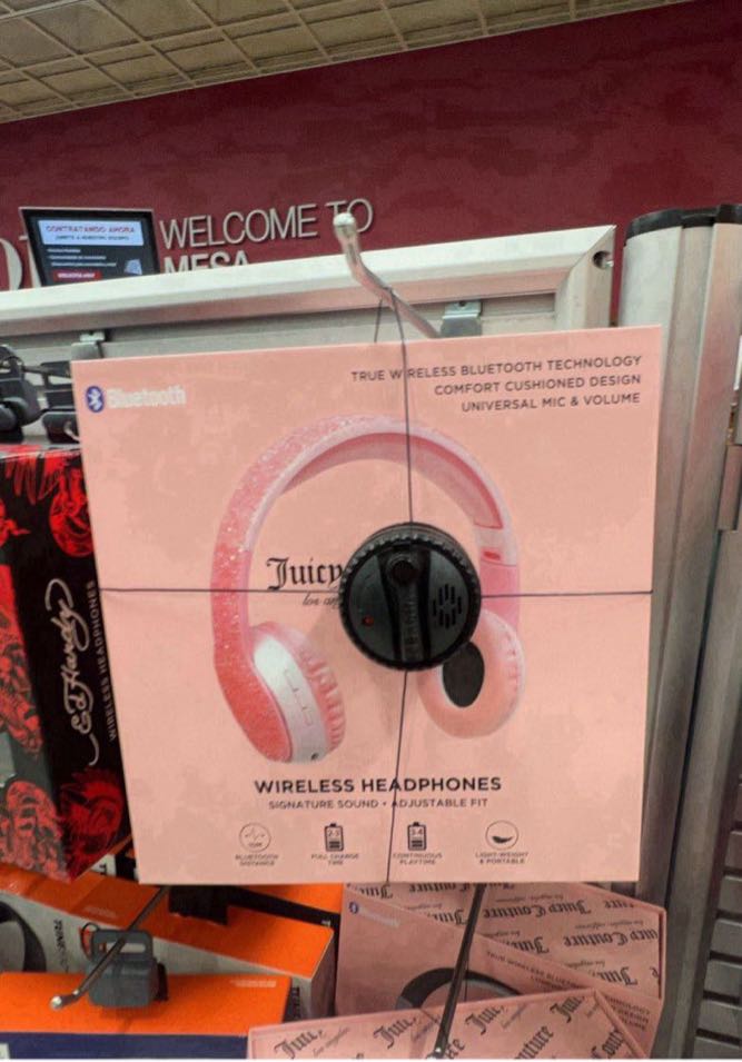 Juicy Couture wireless headphones featuring true wireless Bluetooth technology, comfort cushioned design, and adjustable fit.