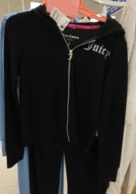A stylish black zip-up hoodie featuring the Juicy Couture logo in rhinestones.