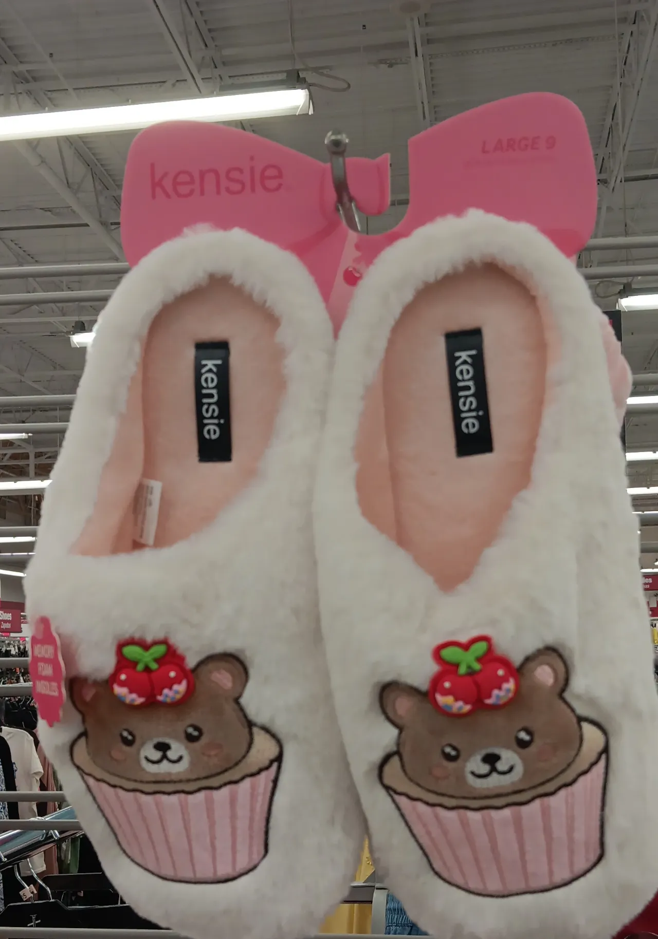 These cozy plush slippers feature a cute bear design with a cupcake motif, perfect for keeping your feet warm and comfortable. Ideal for lounging around the house.