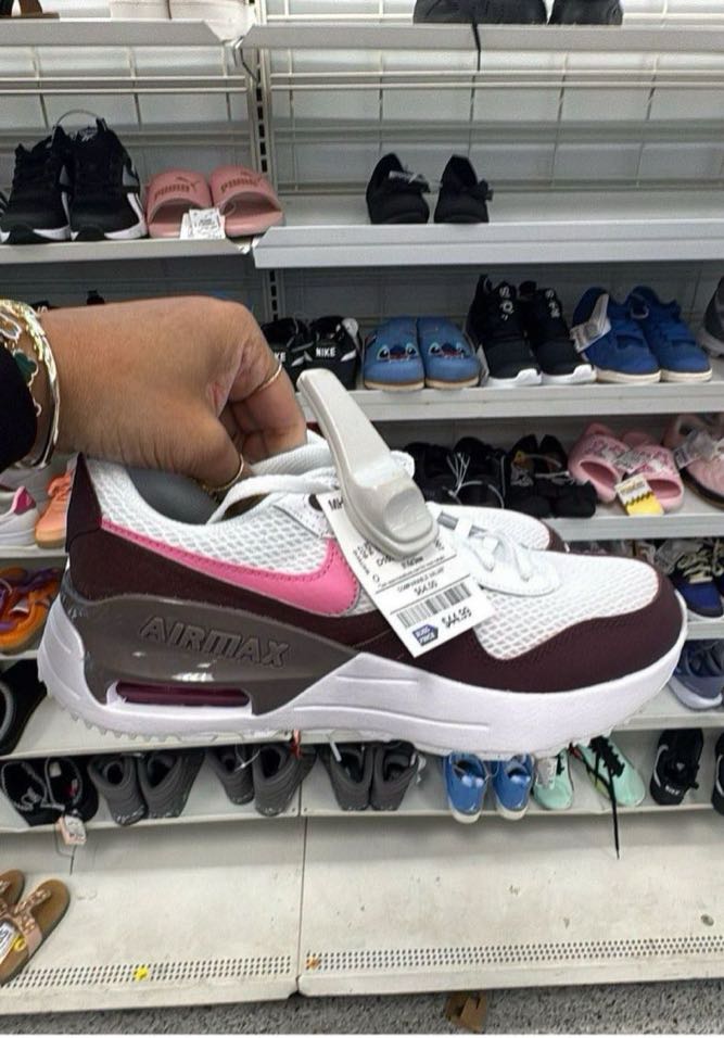 Stylish Nike Air Max sneakers featuring a white mesh upper with maroon and pink accents. Designed for comfort and performance.