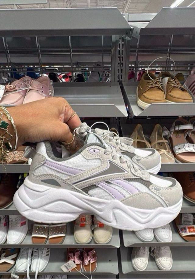 Stylish Reebok sneakers featuring a grey and lavender color scheme, designed for comfort and performance.
