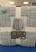 A soft, textured quilt in a light gray color, perfect for adding warmth and style to your bedroom.