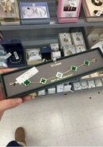 A stylish bracelet featuring green clover charms, perfect for adding a touch of elegance.