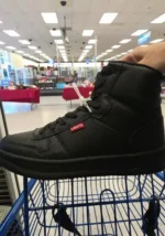 Stylish black high-top sneakers from Levi’s, featuring a textured finish and lace-up design.