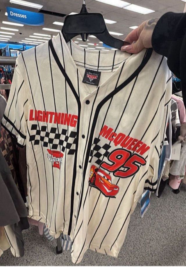 A stylish jersey featuring Lightning McQueen from the Cars franchise, designed with a sporty look and checkered pattern.