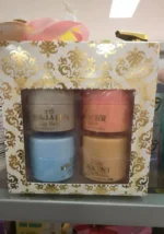 A beautifully packaged set of four lip balms in various flavors, perfect for moisturizing lips.