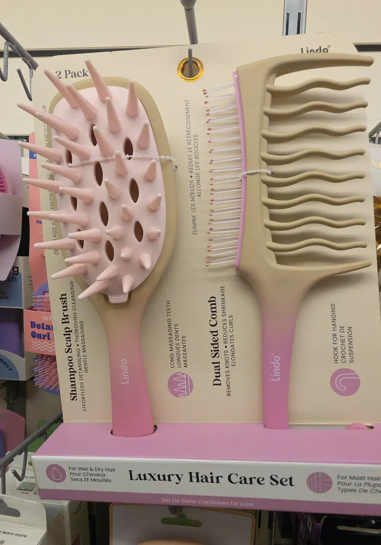 A set of two hair care tools including a shampoo scalp brush and a detangling comb, designed for various hair types.