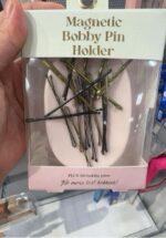 A stylish holder designed to keep bobby pins organized and easily accessible, featuring a magnetic base.