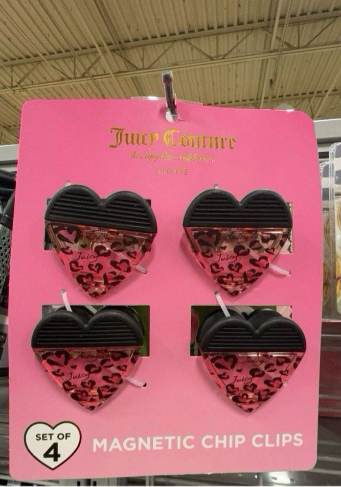 Set of 4 heart-shaped magnetic chip clips featuring a leopard print design.