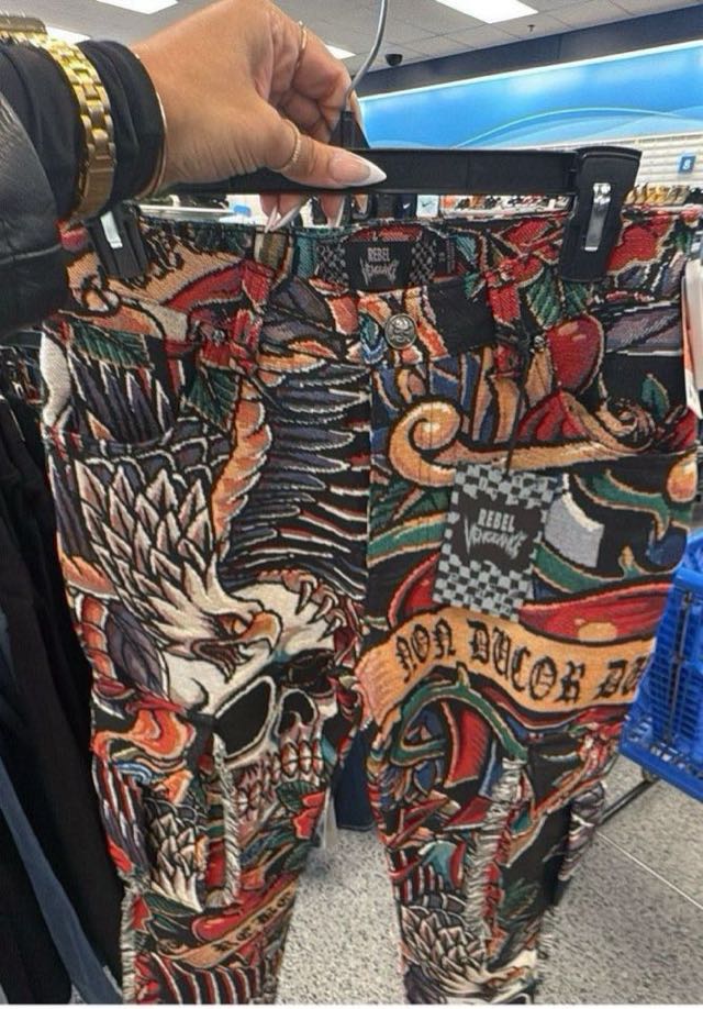 These vibrant pants feature a bold, colorful design with intricate graphics, perfect for making a statement. Ideal for casual wear or adding flair to any outfit.
