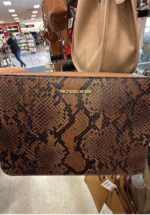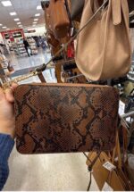 This stylish clutch features a chic snakeskin print, perfect for adding a touch of elegance to any outfit. It includes a detachable chain strap for versatile carrying options.
