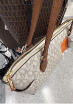 A stylish Michael Kors tote bag featuring a signature logo pattern and leather accents. Perfect for everyday use with ample space for essentials.