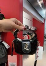 A stylish mini black handbag featuring a gold ‘L’ logo on the front. Perfect for carrying essentials.