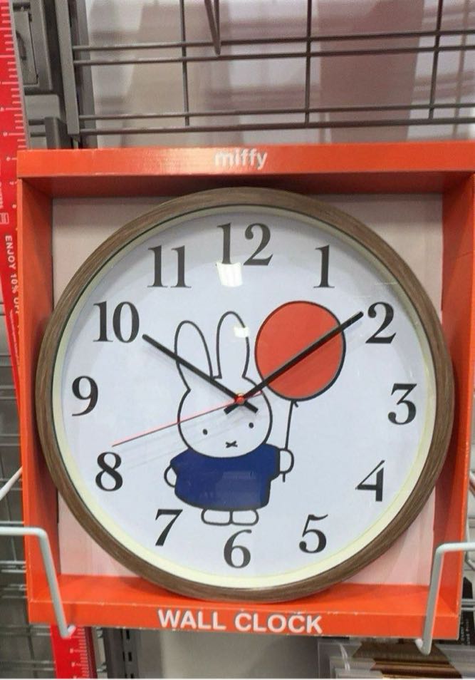 A decorative wall clock featuring Miffy holding a balloon, designed for children’s rooms.