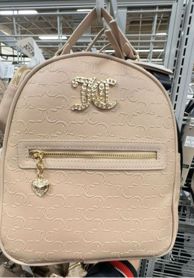 A stylish mini backpack featuring a textured design and a decorative charm.
