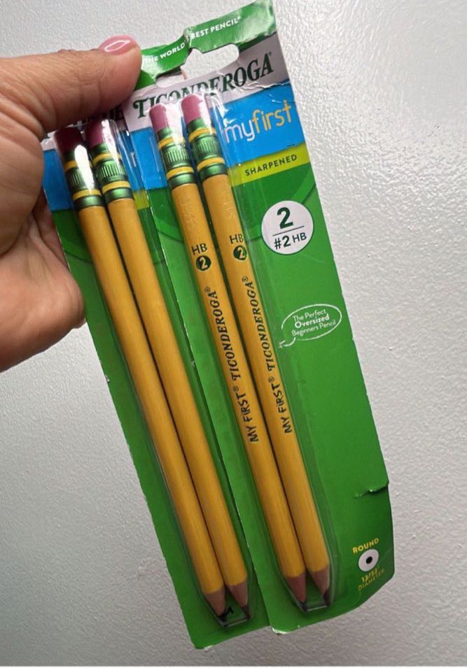 A pack of My First Ticonderoga pencils designed for young learners, featuring a thicker body for easier grip and sharpened tips for smooth writing.