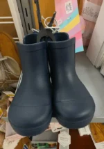 Stylish navy rain boots perfect for wet weather.