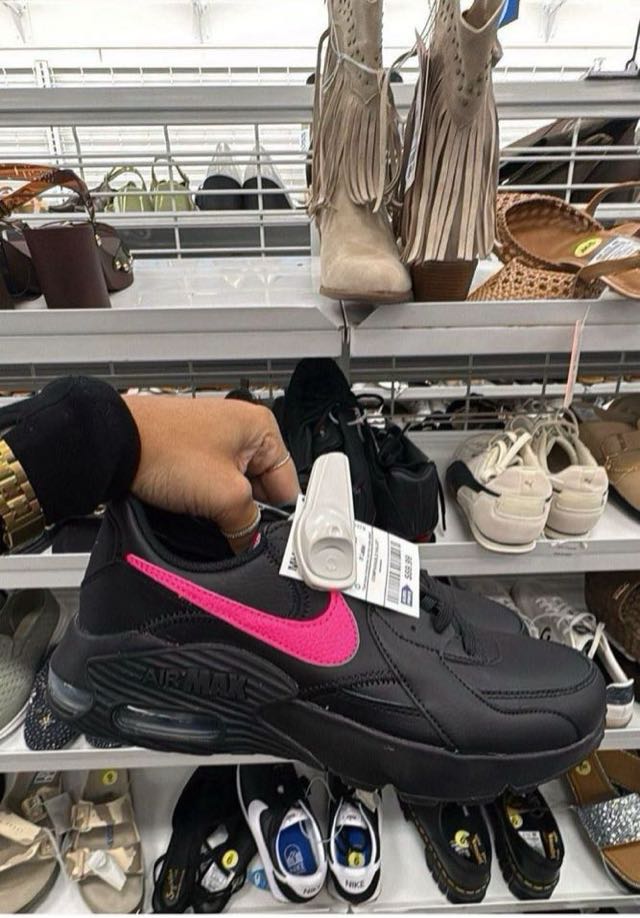Stylish and comfortable Nike Air Max sneakers featuring a black body with pink accents. Ideal for casual wear and athletic activities.