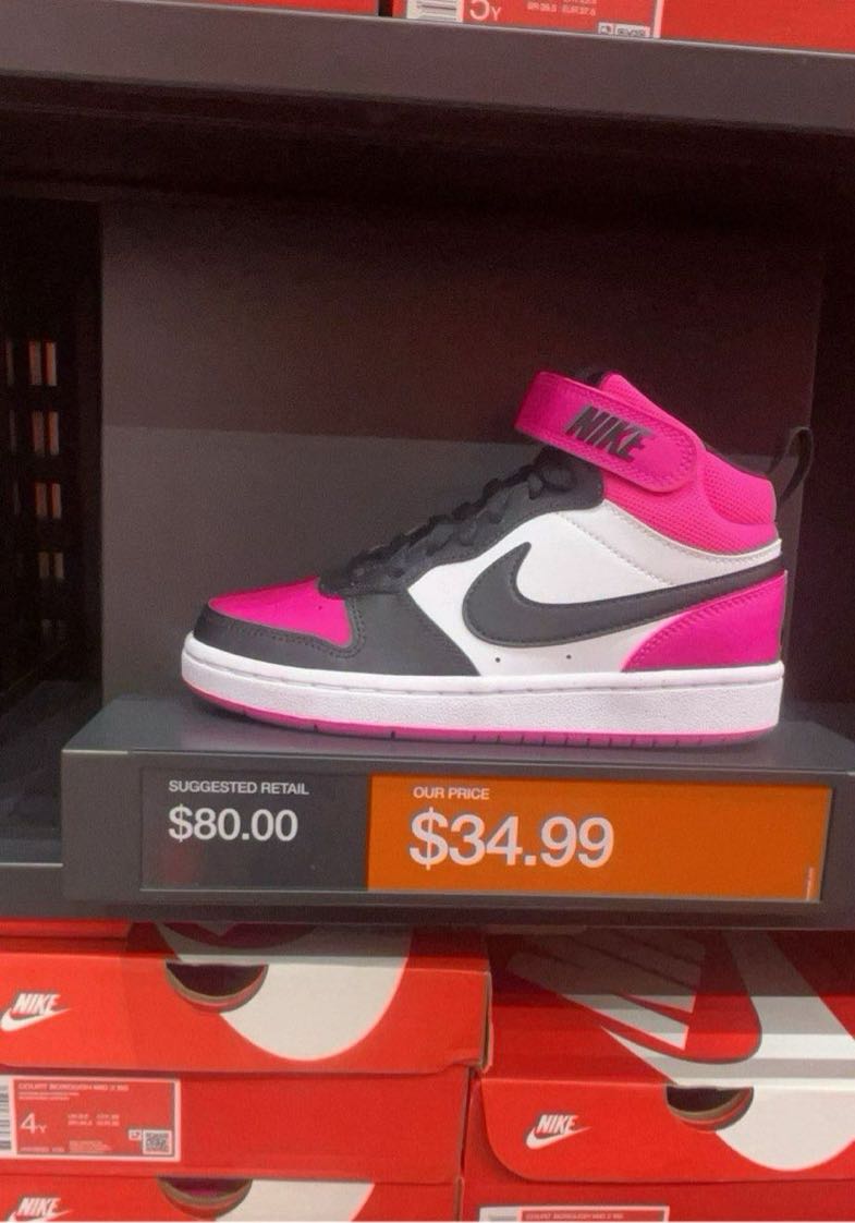Stylish high-top sneakers featuring a pink, black, and white color scheme.