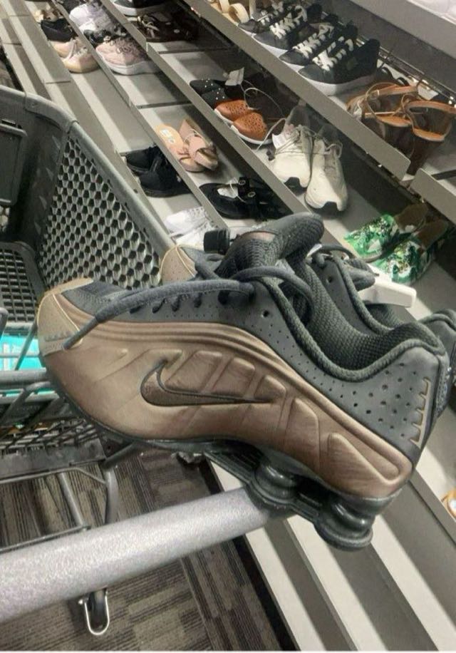 A pair of black Nike Shox sneakers featuring a unique design with cushioning technology.