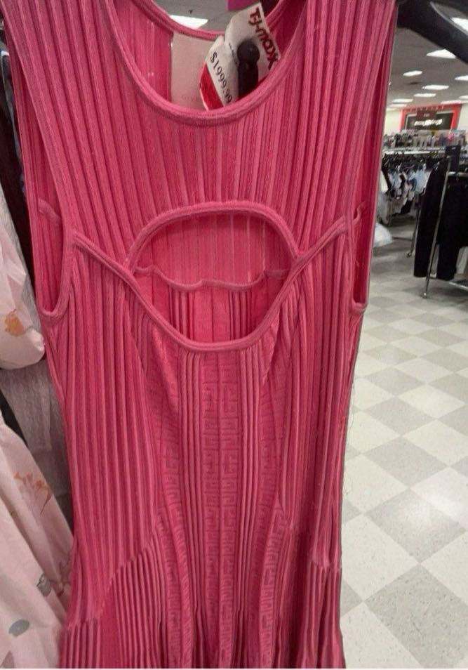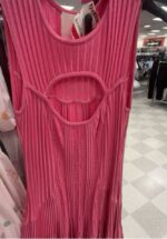 A stylish pink dress featuring a pleated design and cut-out details.