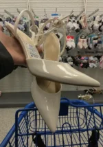 Elegant pointed toe slingback heels in a neutral beige color, perfect for formal occasions.