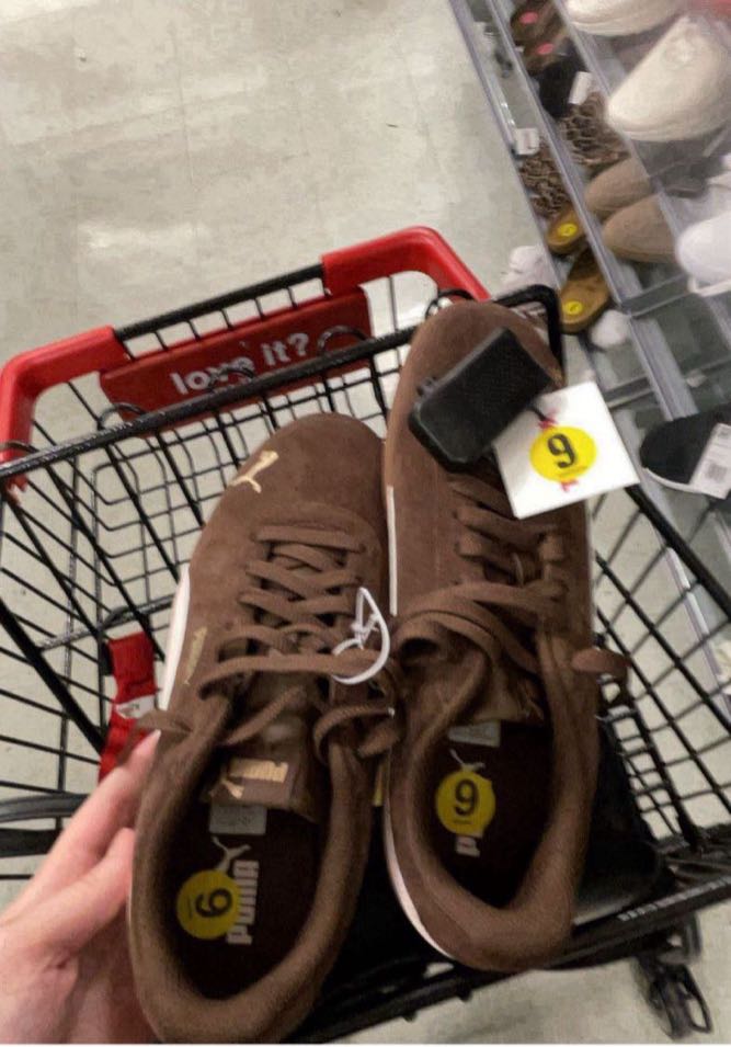 A pair of brown Puma sneakers with a classic design, featuring a lace-up closure and a comfortable fit.