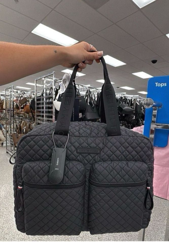 A stylish quilted laptop bag featuring multiple exterior pockets for organization. Ideal for carrying your essentials with a modern touch.