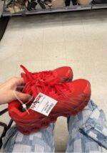 A pair of vibrant red athletic shoes designed for comfort and performance.