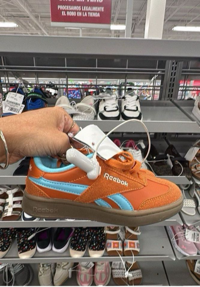 These vibrant Reebok sneakers feature an orange and blue design, perfect for active kids. They provide comfort and style for everyday wear.