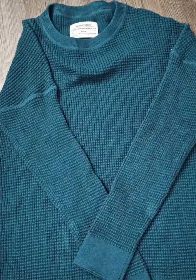 A cozy long sleeve top made from textured fabric, perfect for layering or casual wear. This item is designed for comfort and warmth.