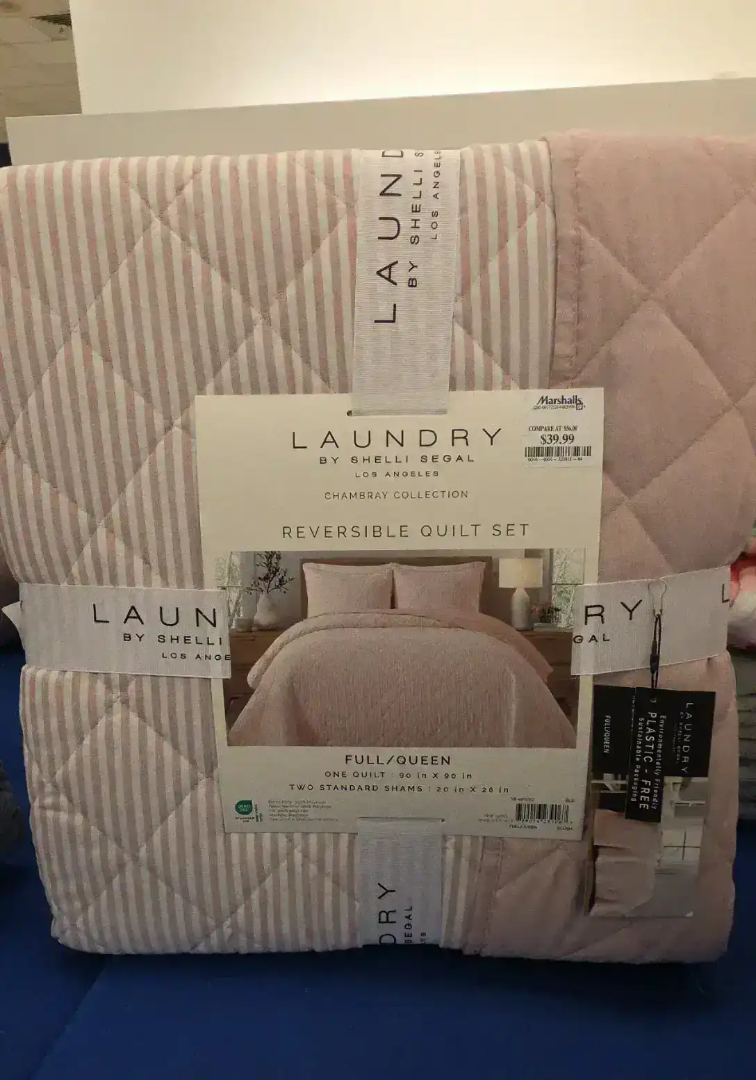 A stylish reversible quilt set featuring a chambray design, perfect for adding a touch of elegance to your bedroom.