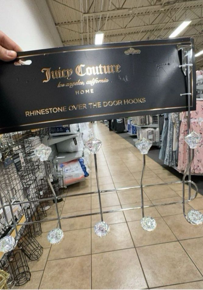 Stylish over-the-door hooks featuring rhinestone accents, perfect for organizing and adding a touch of glamour to your space.