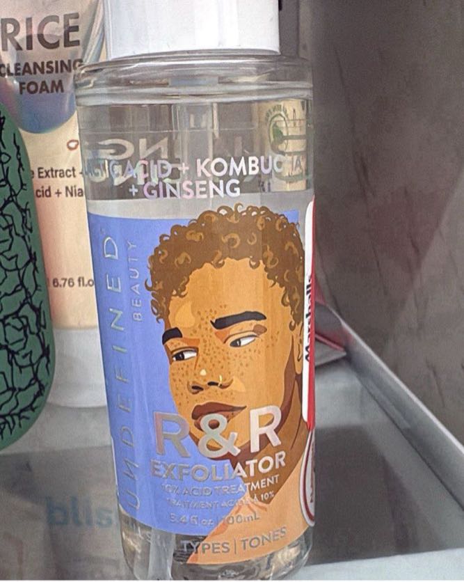 A liquid exfoliating treatment featuring glycolic acid, kombucha, and ginseng, designed to enhance skin texture.