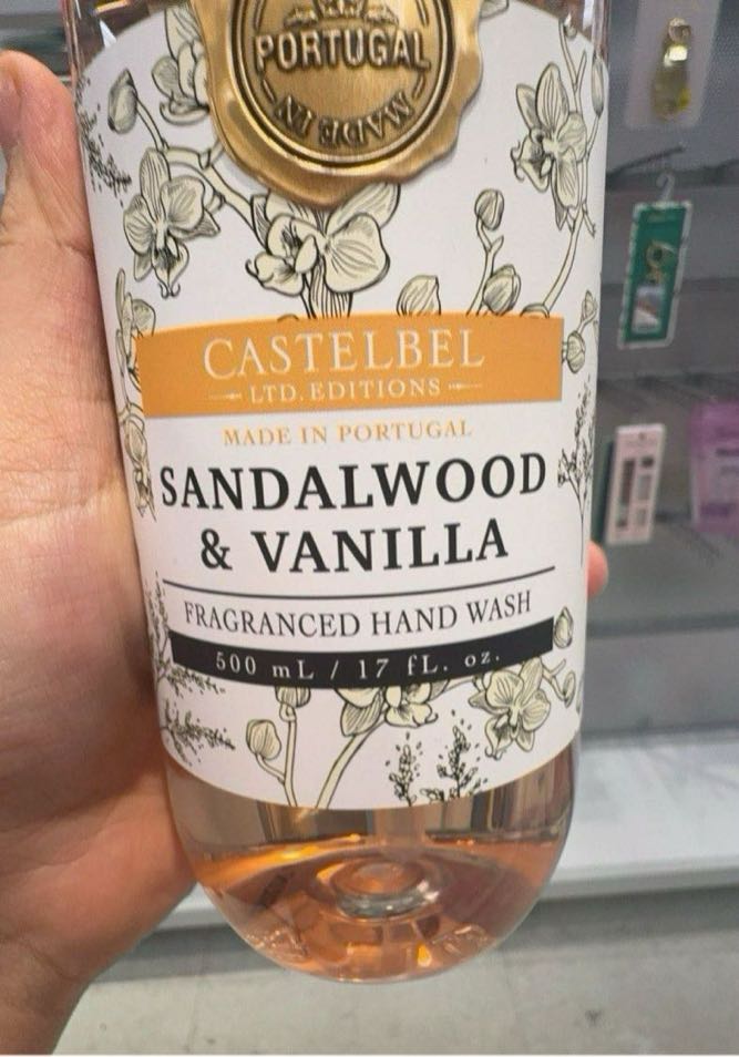 Fragranced hand wash with sandalwood and vanilla scent, made in Portugal.