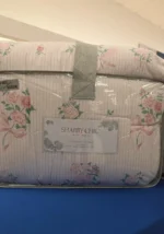 A beautiful quilt set featuring a floral design with soft pastel colors, perfect for adding a touch of elegance to any bedroom.