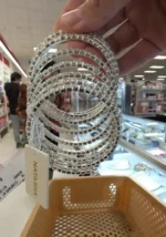 A set of silver bangles featuring a sparkling design, perfect for accessorizing any outfit.