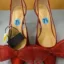 A stylish silver high heel boot featuring a shiny metallic finish and a decorative tassel.