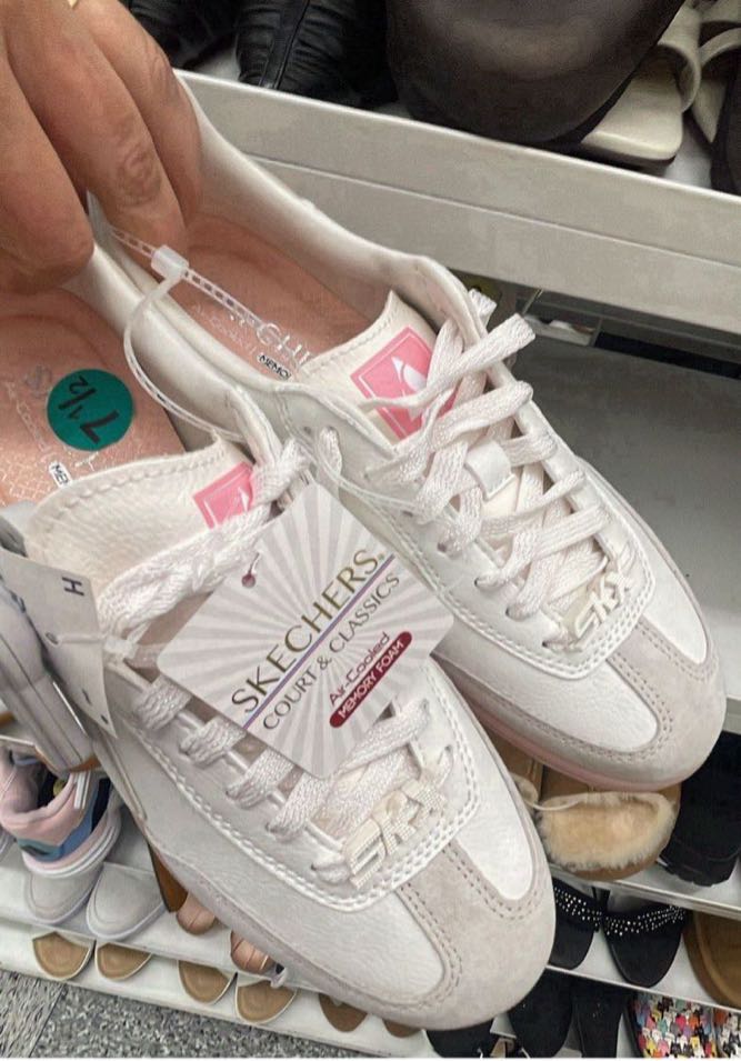 A pair of white Skechers sneakers designed for comfort and style. Ideal for casual wear and everyday activities.