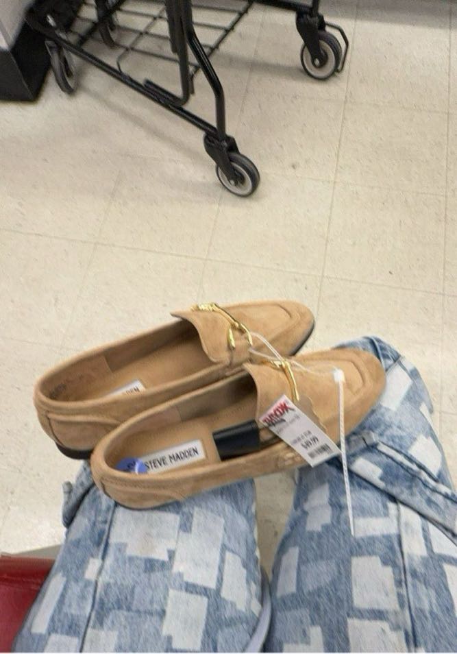 A pair of beige loafers with a gold accent, perfect for casual or semi-formal wear.