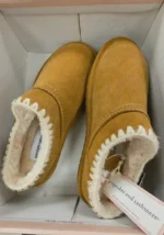 Cozy suede ankle boots with a soft lining and decorative stitching.