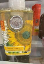 A moisturizing hand soap infused with shea butter, featuring a sunflower design on the packaging.