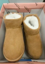 Cozy tan boots with faux fur lining, perfect for cold weather.