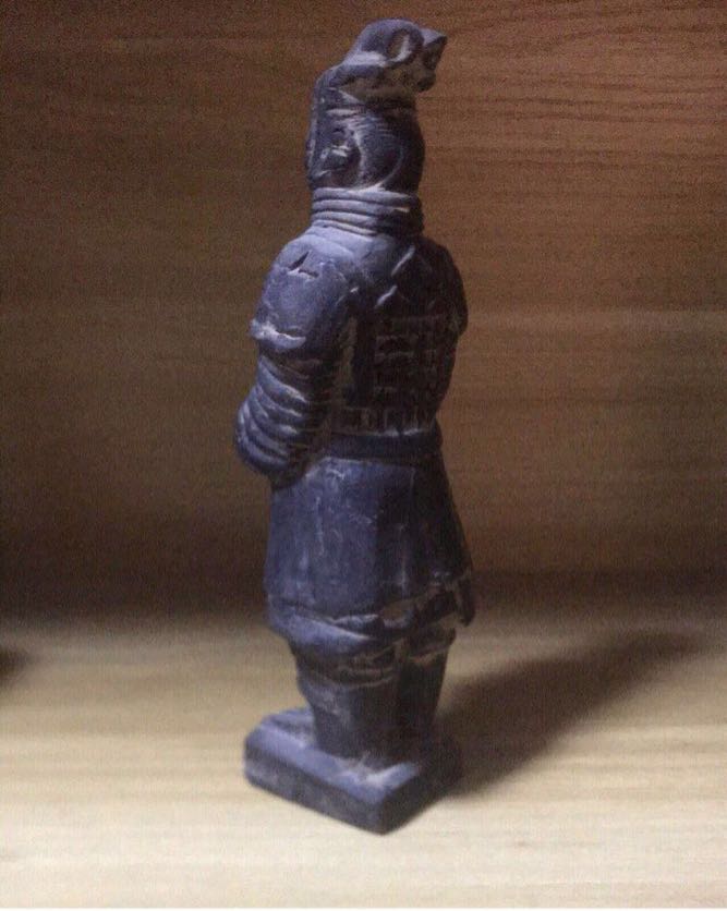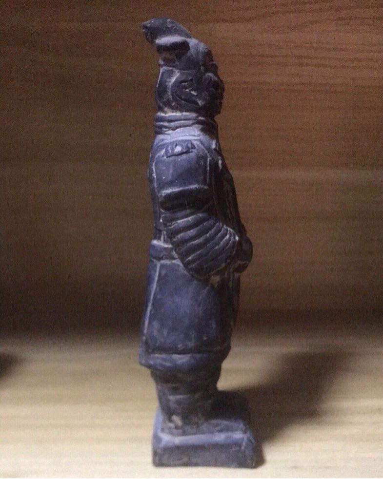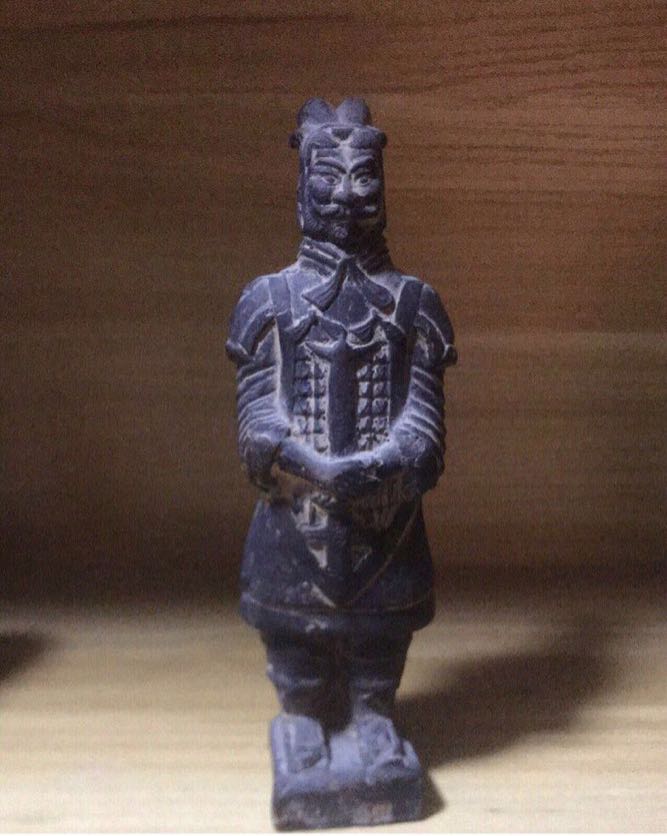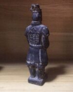 A detailed terracotta warrior figurine, showcasing intricate armor and a poised stance, reminiscent of ancient Chinese history.