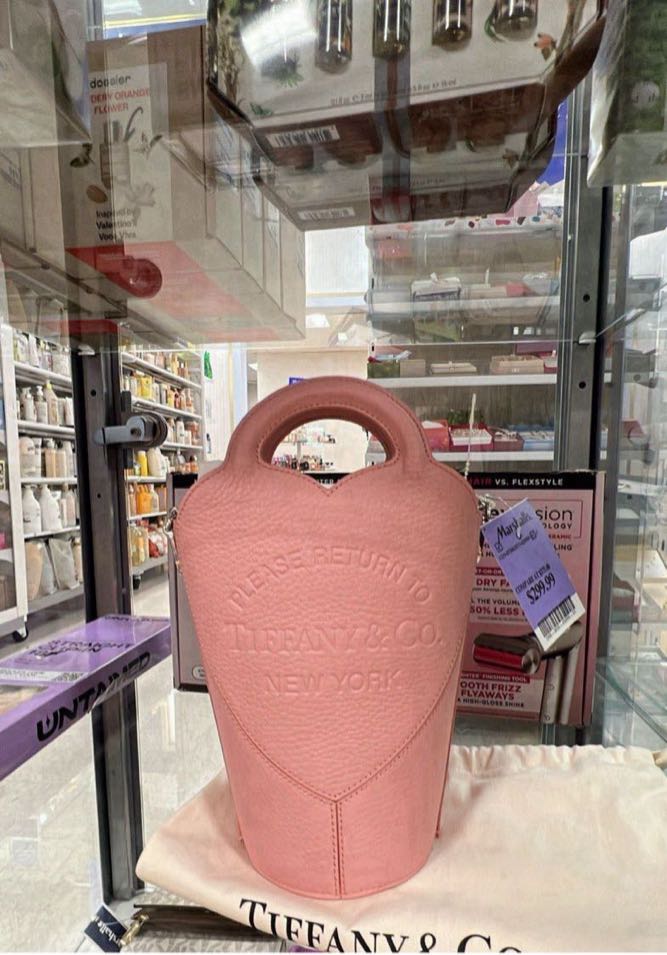 A stylish pink tote bag from Tiffany & Co. featuring a unique embossed design. Perfect for everyday use or special occasions.