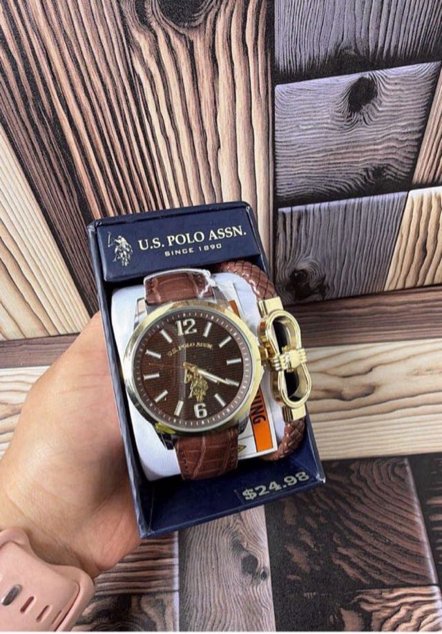 A stylish U.S. Polo Assn. watch featuring a brown leather strap and a classic dial design. Perfect for everyday wear or special occasions.