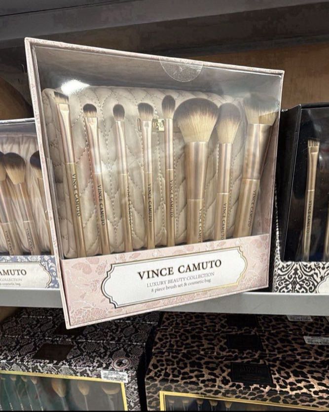 8-piece brush set with a stylish cosmetic bag, perfect for makeup enthusiasts.